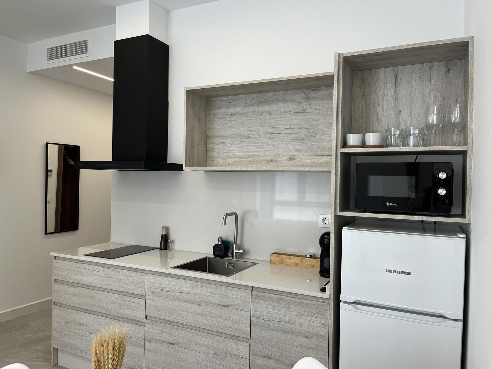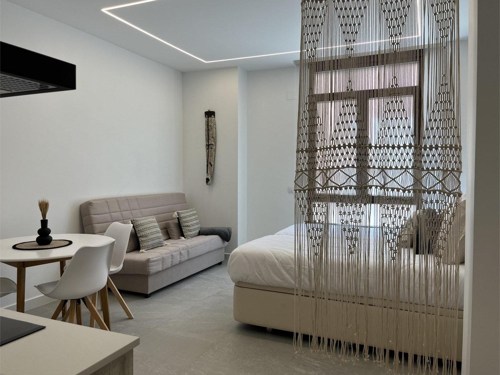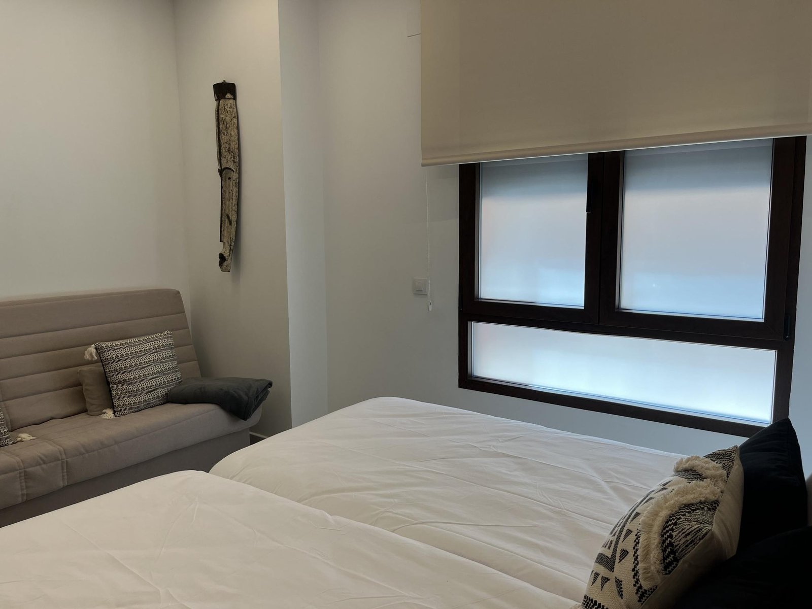 El apartamento es un alojamiento tipo loft, el cual cuenta con una capacidad para hasta 3 personas, con 2 camas individuales de 90cm y un sofá cama de 135 cm. También dispone de baño con ducha y de una pequeña cocina en la que hay diversos utensilios como: microondas, nevera, placa de inducción, sartenes, platos, vasos, tenedores, cuchillos, etc.